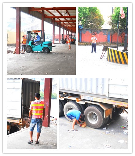 特别针对口岸场站叉车掏箱作业存在的由于集卡未停稳容易造成叉车从平台坠落的安全隐患提出了解决方案并得到落实:叉车进入集装箱前,叉车人员需确认集卡车停稳(确认方式:后轮垫好三角木)。叉车作业完成后,向集卡车司机示意取走三角木,集卡车才能驶离。开箱作业时使用链条辅助开箱。对查验平台闲杂人员可随意进入等影响叉车作业和查验工作的人统一进行整理,现场工作人员需佩戴工作证,穿反光衣,其他无关人员不得上查验平台。