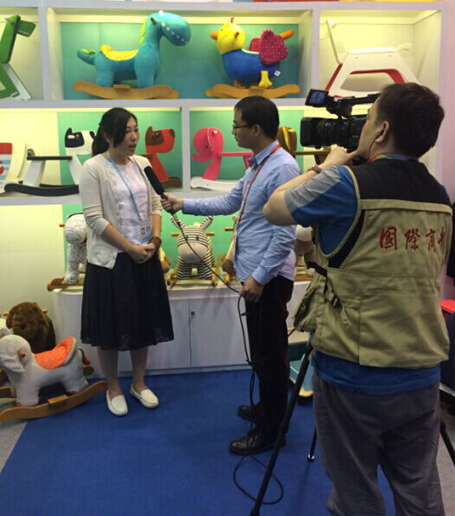 记者对摇架类产品表示兴趣并详细询问了我司对产品的检验标准,徐总介绍我们企业的产品符合欧盟、美国等各大体系的检测标准,并且我们的木器使用的油漆都是无毒无味安全环保的水性油漆,我们要让中国的孩子也能用上和欧美国家一样标准的高品质玩具。