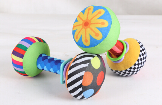 哈喜屋新哑铃玩具,哑铃毛绒,益智毛绒玩具。毛绒哑铃,质地温顺柔和;亲肤细腻,可放心啃玩;锻炼身体机能,增强肌体协调。哑铃造型,抓握方便,可锻炼宝宝手臂力量和抓握能力,促进血液循环。采用环保材质,无毒无害,质地柔软细腻,不会伤害宝宝娇嫩肌肤。外置塑料环内置响铃,摇动时lingling响,增强趣味性。颜色艳丽五彩缤纷,鲜艳靓丽不易褪色,可刺激视觉发育。优质海绵杆,柔韧结实不易折断,握感舒适。轻巧塑料环,圆形、方形、心形,色彩各一,可认知形状和颜色,碰撞时更有声音哦。内置响铃,玩耍摇晃时会有声音,刺激宝宝听力发育。家长可让宝宝,玩耍--抓、握、摇、举,颜色鲜艳声音清脆,带给宝宝新奇感;锻炼--在轻松愉快的气氛中,让宝宝自觉玩耍,也锻炼宝宝各项身体机能,促进血液循环,增加体抗力。