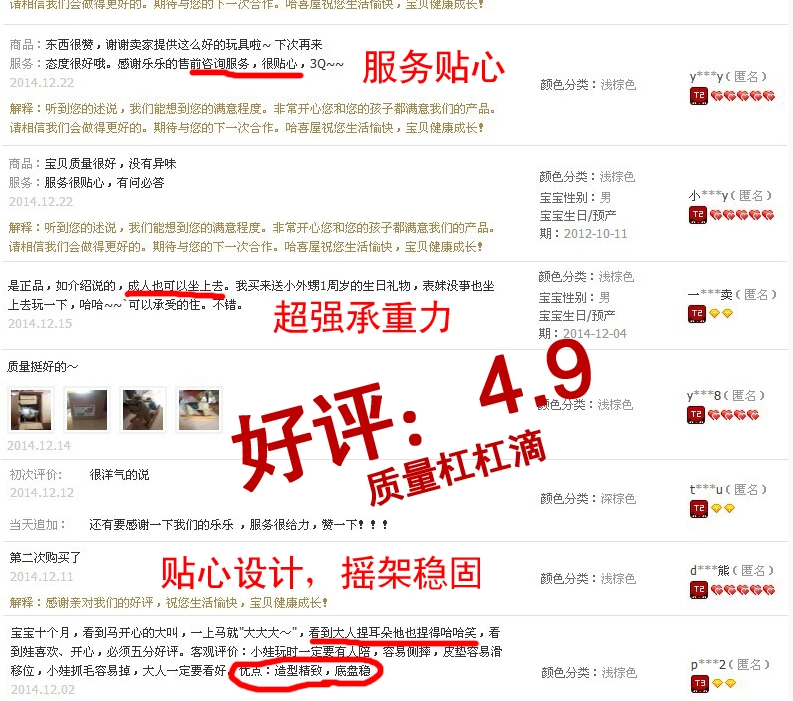 5、摇马底架实木、夹板多层复合,安全结实。